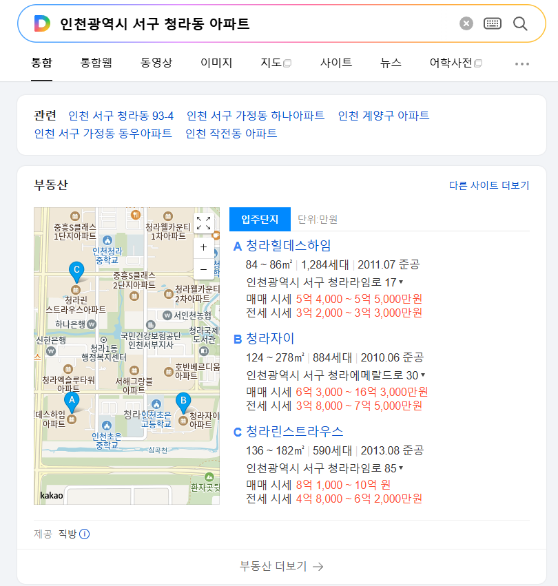 다음 부동산 매물 시세