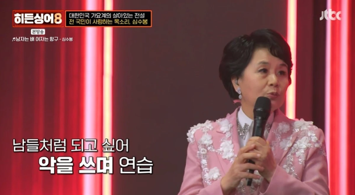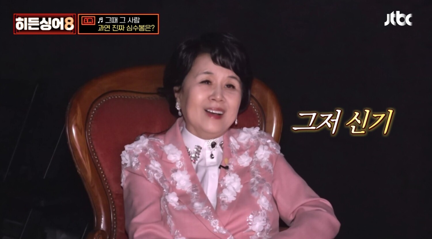 최근 심수봉은 JTBC ‘히든싱어8’ 첫 회 원조 가수로 출연하며 다시 한 번 대중의 관심을 집중시켰다. 데뷔 40년이 넘은 시점에서도 여전히 흔들림 없는 가창력을 보여주며 ‘레전드’라는 평가를 다시 입증했다.