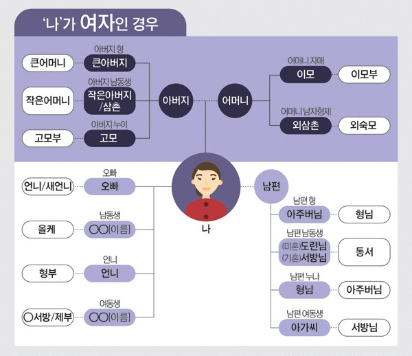 - 아내의 오빠의 아내: 형수님으로 부르는 경우가 많음